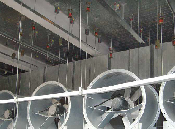 選用低頻高強度優質彈簧,有效降低低頻振動採用超大外殼吊桿孔設計,有效防止聲橋產生,隔振彈簧預留100%以上過載能力,水平與垂直剛度的比值約0.9-1.1 之間。